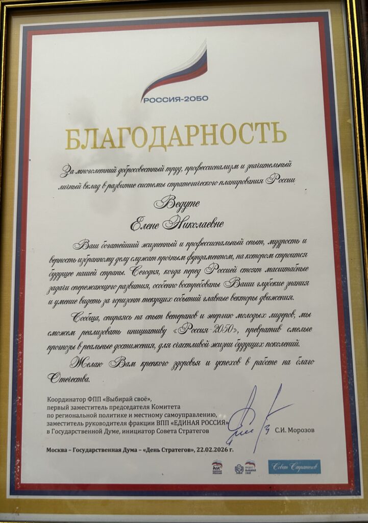 Заведующая кафедрой стратегического планирования и экономической политики Елена Ведута вошла в состав экспертов Совета Стратегов, ответственных за реализацию Проекта партии Единой России «Выбирай свое».
