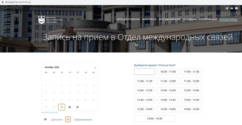 Электронная платформа предварительной записи для подачи документов, которая позволяет значительно сократить время ожидания и упорядочить процесс. Теперь иностранные студенты могут заранее выбрать удобный слот для визита в отдел, что полностью исключает необходимость длительного ожидания в очередях.