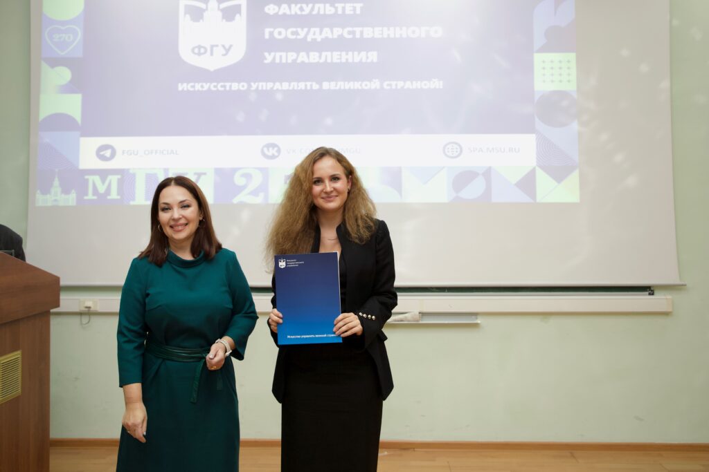 После окончания торжественной части мероприятия была проведена лекция, посвященная ключевым аспектам подготовки документов для представления в диссертационные советы МГУ имени М.В.Ломоносова. Особое внимание было уделено особенностям работы диссертационных советов, открытых по ходатайству факультета государственного управления. Участники получили рекомендации, призванные обеспечить успешное прохождение всех формальных процедур и минимизировать возможные ошибки.
